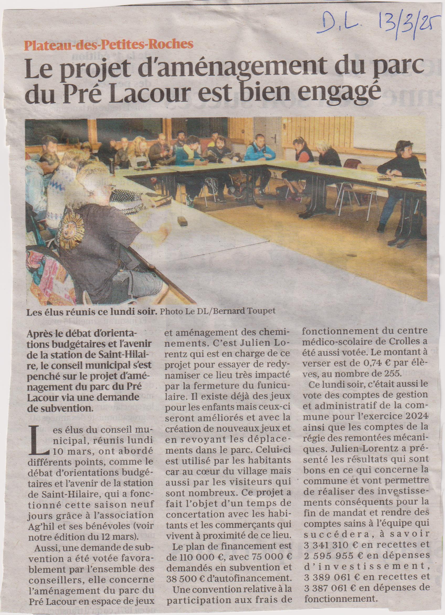 article paru sur le Dauphiné Libéré du 13 mars 2025 (Conseil Municipal du 10 mars 2025)